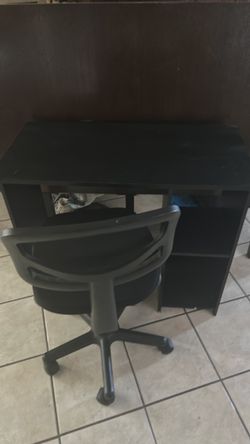 Wood desk, two shelves and computer chair with cushion$30Hesperia, CA