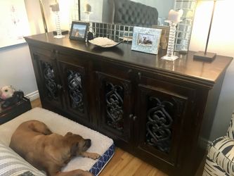 Solid Wood Buffet / Credenza w Carved Wood And Iron Doors – Statement Piece$700West Hollywood, CA
