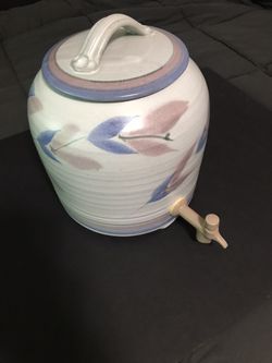 Vintage Stoneware 1992 Large Decorative Glazed Pottery Water Crock w/ Spigot Dispenser& Lid$65San Angelo, TX