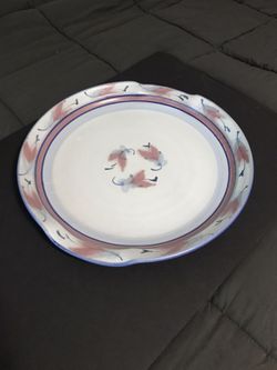 Vintage Stoneware 1992 Large Decorative 17” Wide Serving Tray w/ Red & Blue Leaves and Handles$55San Angelo, TX