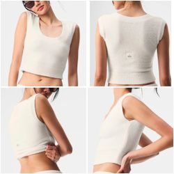Alo Snuggle Up Sweater Short Sleeve Top Ivory White Women's Size Medium NWT $84Riverside, CA