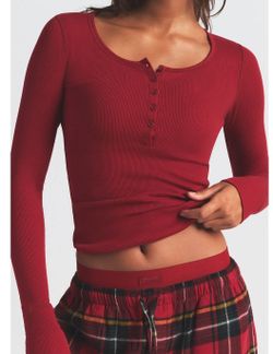 SKIMS Cotton RIb Scoop Neck Henley Cherry Color Women's Size Medium NWT$39Riverside, CA
