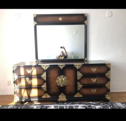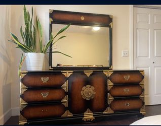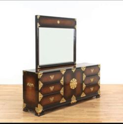 Chinoiserie Asian Inspired Tigerwood Brass Hollywood Regency Vintage Dresser With Mirror$450Seattle, WA
