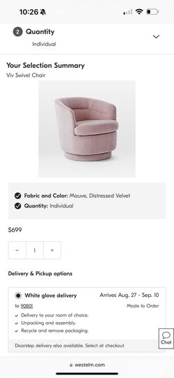 Retail $699 West Elm Viv Swivel Chair - Velvet Chair$195Malibu, CA