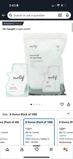 Motif Medical Breastmilk Storage Bags (6 oz, 100 Count)$10Pembroke Pines, FL