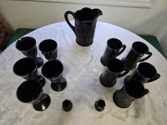 Rare Vintage Indiana Monarch Tiara Daisy Pattern Pitcher amethyst pressed milk black glass 13 PC set$300Lilburn, GA