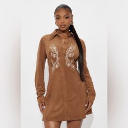 Fashion Nova Brown Embroidered Suede Dress$15Queen Creek, AZ