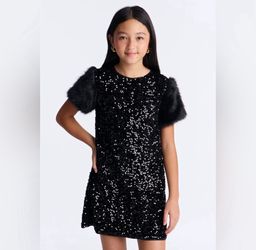 New Lil Girls Black Sequin Dress with Faux Fur Sleeves$15Queen Creek, AZ
