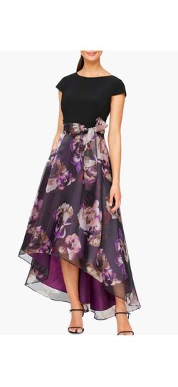 Women’s Formal Dress Size 14W SLNY Black Purple Floral Tie Hi-low Tie Waist Gown$99Orland Park, IL