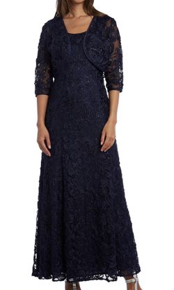 Description: Elegant floral embroidery decorates this set by RM Richards, featuring a gorgeous full-length dress paired with a matching jacket with s$135Orland Park, IL
