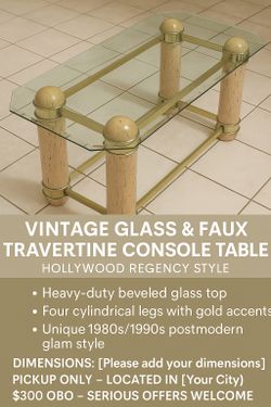 Vintage Glass & Faux Travertine Console Table – Hollywood Regency Style$100Fort Lauderdale, FL