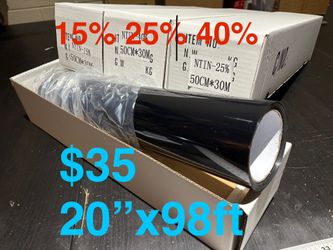 Wholesale Lots Universal Black 15% VLT 20" in x 100'Ft Standard Dyed Ply Film Color - Privacy Window Tint Roll for Car, Home, Blocks UV/IR Rays$25Covina, CA