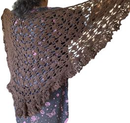 Brown shimmer BRIDAL crochet LACY KNIT scarf PRAYER shawl triangle WRAP SHELLS$35Apple Valley, MN