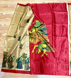 Madhubani Kalamkari figure NWT beige Red Pallu ART silk Sari W/ BLOUSE fabric$34Apple Valley, MN