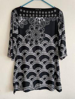 A women's mid-length top (or dress top) designed by the Lavanya brand. • Print style: It features highly recognizable black and white geometric and fl$20San Francisco, CA