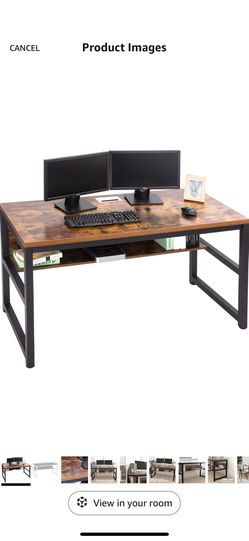 TOPSKY Computer Desk with Bookshelf/Metal Hole Cable Cover 1.18" Thick Desk (55", Rustic Brown)$50Bellevue, WA