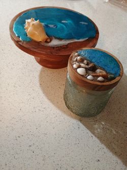 Gorgeous Beautiful Beach Ocean Resin Art Wooden Mini Small Table And Glass Jar Gift Set$60San Diego, CA