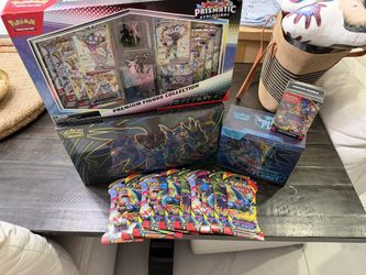 (1)Pokémon SV-Prismatic Evolutions Super Premium Collection (SPC) (3) Phantasmal Flames UPC (16) Destined Rivals sleeves packs (2) phantasmal flames $1,300Miami, FL