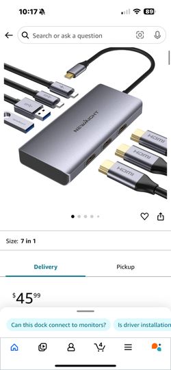 USB C Docking Station 3 Monitors 4K@30Hz, Newmight 7 in 1 Laptop Docking Station with 3 HDMI, 100W PD, USB C 2.0, 2 USB A, USB C to HDMI Extended Disp$20Seattle, WA