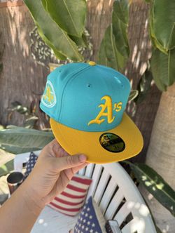 Exclusive two tone SOLD OUT NEW ERA 59fifty OAKLAND ATHLETICS 1973 WORLD SERIES SPEARMINT UV (TEAL/GOLD) not hat club Fitted Hat $30Whittier, CA