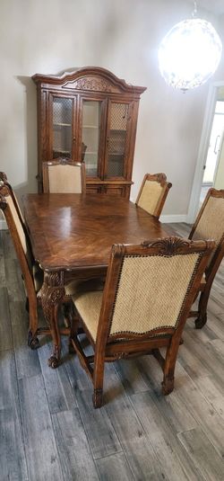 Solid Wood 8-Chair Dining Set + Matching China Cabinet – Heavy, Carved, Excellent Condition $800Clermont, FL