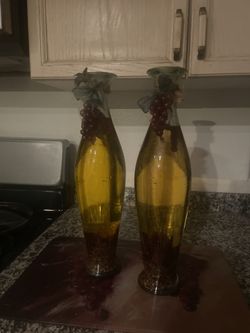 Set of two tall decorative glass bottles with grape design.$20Las Vegas, NV
