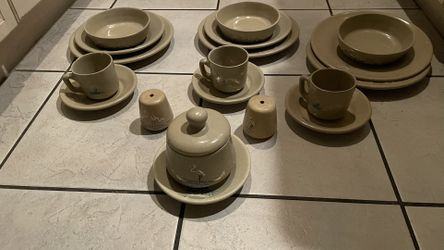 Complete set for 3 of beige ceramic plates, bowls, and cups.$15Las Vegas, NV