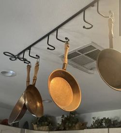 Decorative 4 copper pans with wooden handles and hanging base$40Las Vegas, NV