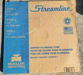 Streamline Tubing: Copper, 1/2 in, Type L, 60 ft, Coil