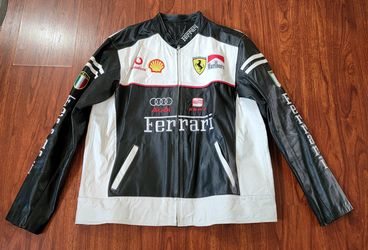 Vintage Ferrari Racing Team F1 White Black Red Embroidered Logos Leather Jacket Sz XXL$200Oxnard, CA