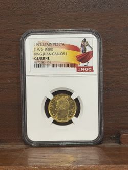 a 1975 Spain 1 Peseta coin featuring King Juan Carlos I, certified as genuine by NGC$15San Diego, CA