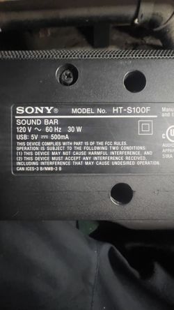 Sony Sound Bar Ht100s$40San Francisco, CA