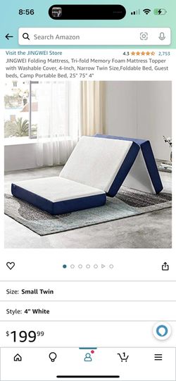 JINGWEI Folding Mattress, Tri-fold Memory Foam Mattress Topper with Washable Cover, 4-Inch, Narrow Twin Size,Foldable Bed, Guest beds, Camp Portable B$125Phoenix, AZ