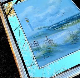 Original Nautical Lighthouse Oil Painting With Mirrored Border 24" x 26" MUST BE PICKED UP BY TUES 6/17 $22East Patchogue, NY