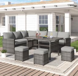 Brand New Gray Patio Sectional Sofa Couch With Dining Table And 3 Ottomans $800Alafaya, FL