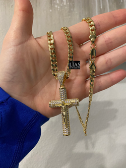 New 14k yellow gold filled with lab created diamonds Cuban link necklace and cross pendant Jesus$140Orlando, FL
