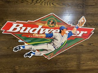 VINTAGE 1997 BUDWEISER BEER SIGN BASEBALL PLAYER TIN METAL EMBOSSED 35" X 18"$60Chandler, AZ