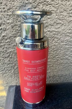 Vintage Thirst Fire Extinguisher Wind Up Musical Decanter, "How dry I Am" Works$40Enterprise, NV