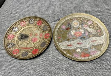 Vintage Brass Plate Ornate Wall Hanging Etched Hammered Embossed Painted 6”$30Las Vegas, NV