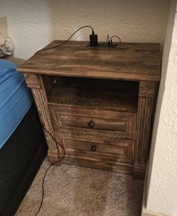 26" Tall End Table with Charging Station, Farmhouse Nightstand w/Roman Column for Bedroom, Living Room, Orange unassembled **BRAND NEW- UNOPENED - IN$150Milpitas, CA