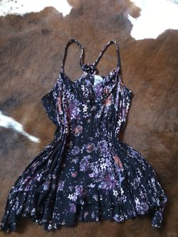 Floral purple dress size (Med) 32 inches long , can also use as cover up or with shorts . By Free People .$35Chula Vista, CA