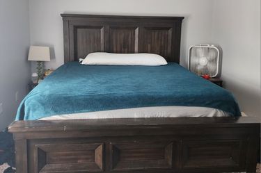 Wooden Outdoor Chaise Lounge With Gray Cushions $140Brownsville, TX