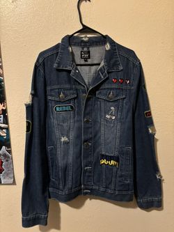 Rebel Star Men's Size Large Blue Denim Jacket Game Over Embroidered Distressed$25Compton, CA