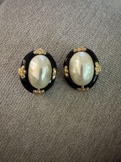 Vintage Kathleen Mailliard Earrings – Black Enamel & Faux Pearl Clip-Ons$25Concord, CA