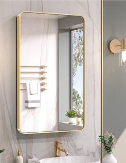 NIB 20 x 32 Inch Gold Mirrored Medicine Cabinet, Recessed Medicine Cabinets for Bathroom, Dim Brushed Brass Stainless Steel Framed, Adjustable Shelve$35Phoenix, AZ