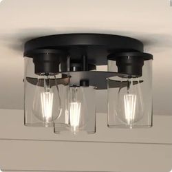 NIB 11.25-in Matte Black Indoor 3 -Light Flush Mount Light with Clear Glass$25Phoenix, AZ