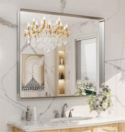 NIB 40X36 Inch Brushed Nickel Bathroom Mirror, Rounded Rectangle Silver Metal Frame Mirror, Brushed Nickel, Anti-Rust, Shatter Proof, Hangs Horizontal$35Phoenix, AZ