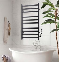 NIB Towel Warmer Heated Towel Rack-Bar - Nopwer Bathroom Wall Mounted Electric Towel Drying Matte Black 10 Bar Plug-in