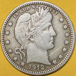 1912 U.S. BARBER SILVER QUARTER 25c COIN (XF-Extra Fine)$50Bellevue, WA