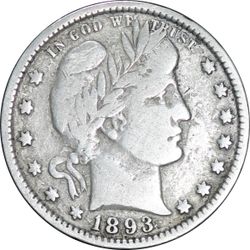 1893 U.S. BARBER SILVER QUARTER 25c COIN (Fine)$30Bellevue, WA